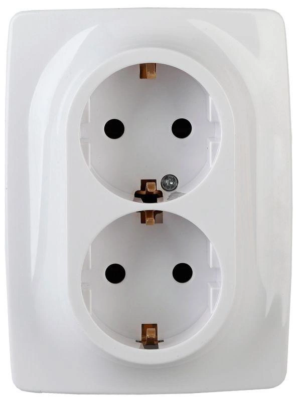 Розетка 2-м СП Эра12 12-2106-01 16А IP20 16AX 250В 2х2P+E Schuko бел. Эра Б0031228