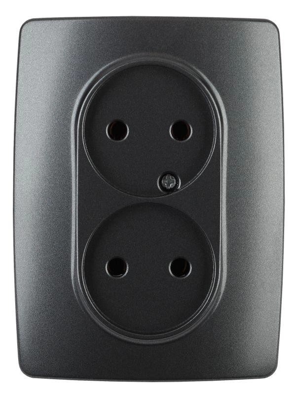 Розетка 2-м СП Эра12 12-2107-05 16А IP20 16AX 250В 2х2P антрацит Эра Б0031242