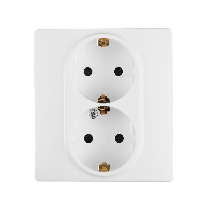 Розетка 2-м СП Etika 16А IP31 250В 2х2P+E с заземл. защ. шторки немецк. стандарт безвинт. клеммы бел. Leg 672233
