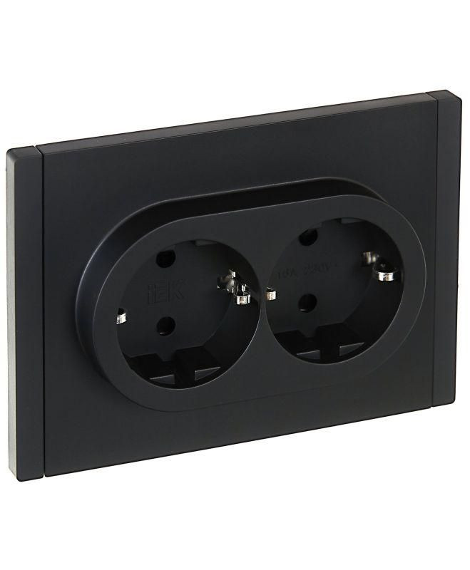 Полное описание: Розетка 2-м СП FORTE&PIANO FP123 16А с заземл. защ. шторки безвинт. крепл. черн. IEK FP-R24-16-1-K02