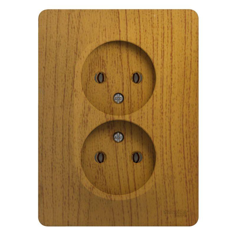 Розетка двойная Schneider Electric Glossa (в сборе, цвет дерево дуб) без заземления и без шторок подходит для сетей 250 В, на ток 16 А.