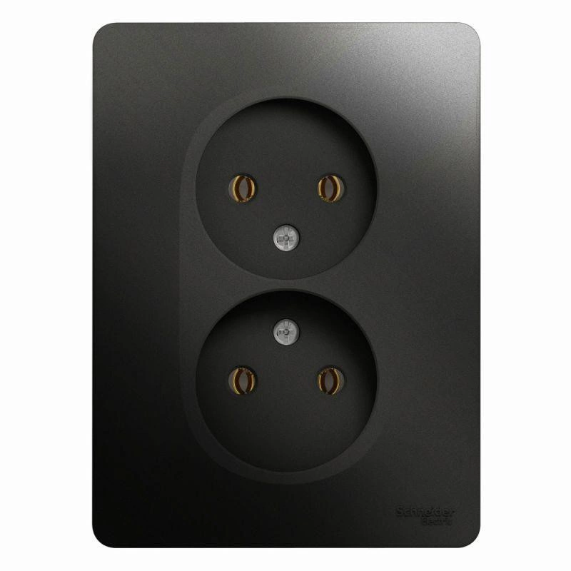 Розетка двойная Schneider Electric Glossa (в сборе, цвет антрацит) без заземления и без шторок подходит для сетей 250 В, на ток 16 А.