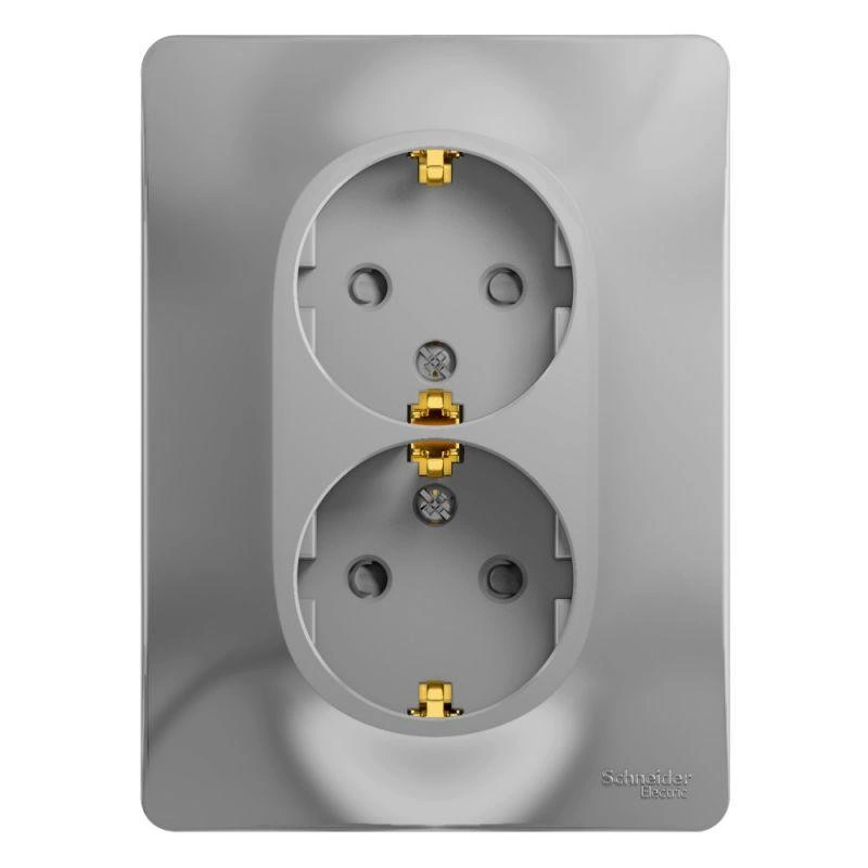 Полное описание: Розетка 2-м СП Glossa 16А IP20 с заземл. защ. шторки в сборе алюм. SchE GSL000326