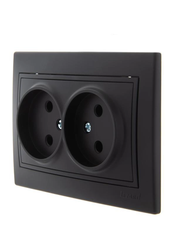 Полное описание: Розетка 2-м СП Mira 16А IP20 без заземл. со вставкой керамика черн. бархат LEZARD 701-4242-128