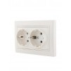 Розетка 2-м СП Мира керам. с заземл. жемчуж. бел. перламутр Lezard 701-3030-127 представляет собой электроустановочный механизм двухместной розетки.