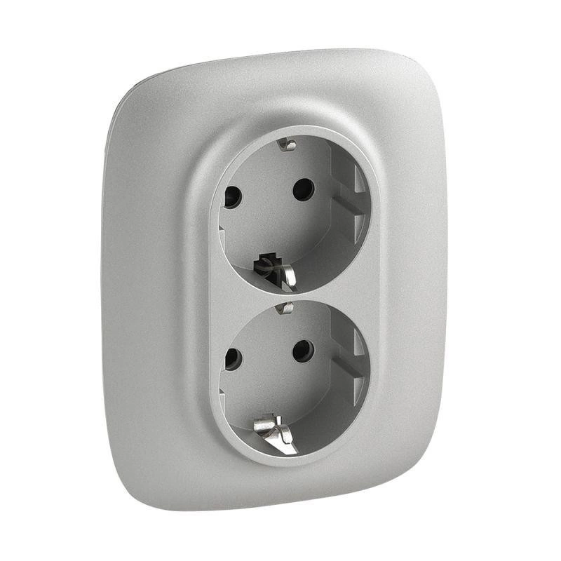 Розетка 2-м СП Valena Allure 16А IP20 250В 2х2P+E защ. шторки безвинт. клеммы с лицев. панелью алюм. Leg 753926