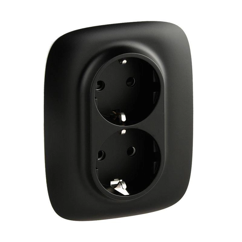 Полное описание: Розетка 2-м СП Valena Allure 16А IP20 250В 2х2P+E защ. шторки безвинт. клеммы с лицев. панелью антрацит Leg 753936