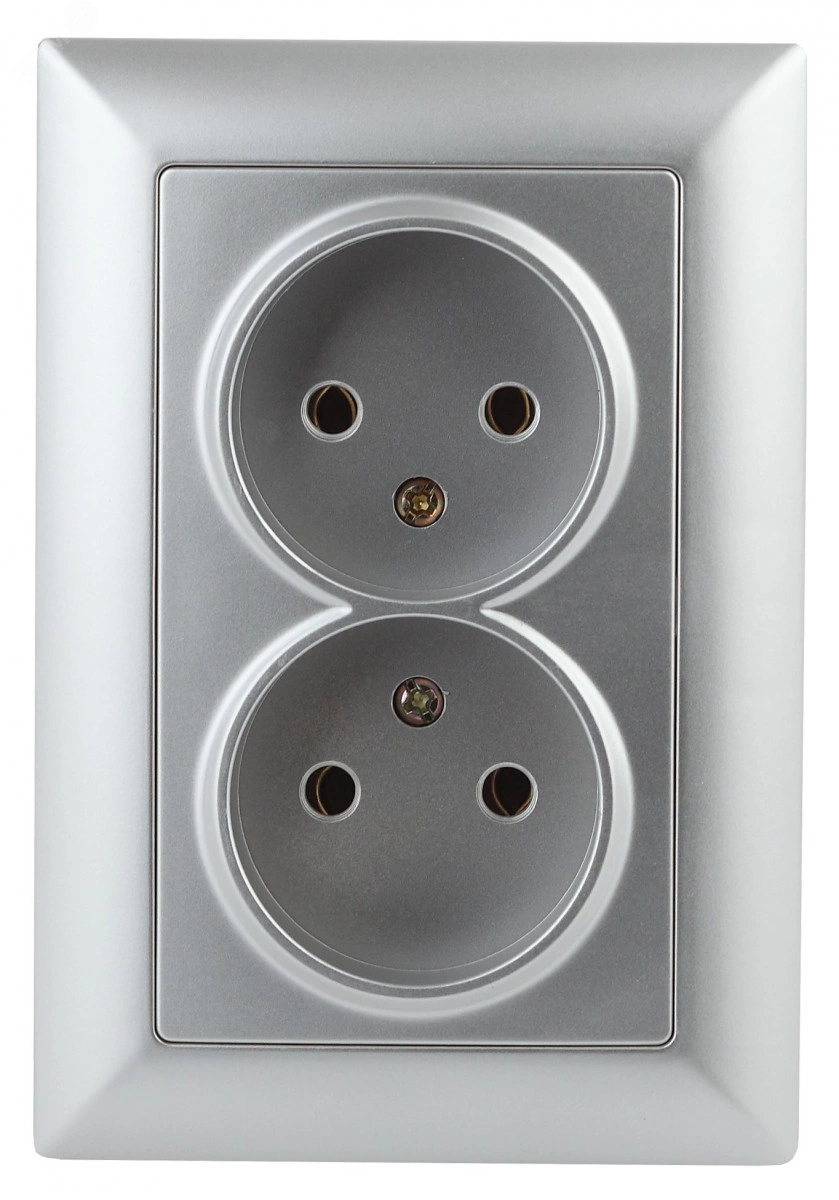 Розетка 2х2P, 16А-250В, СУ, Solo, алюминий, 4-204-03