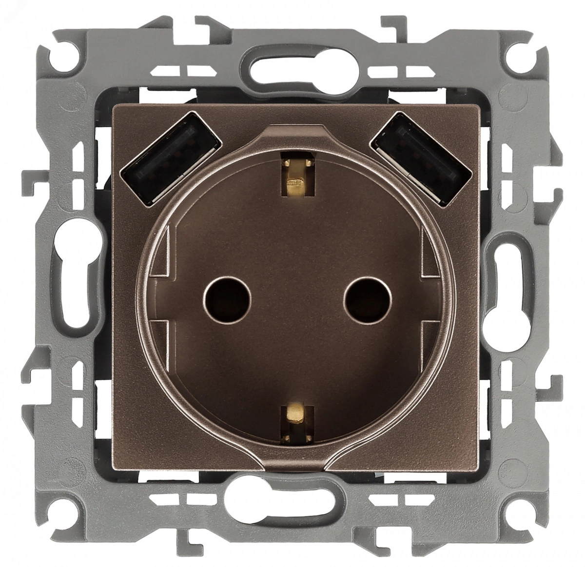 Розетка 2P+E 16A-250В, штор. с 2xUSB 5В-3А, Эра12, бронза (10/100/2000) 12-4109-13