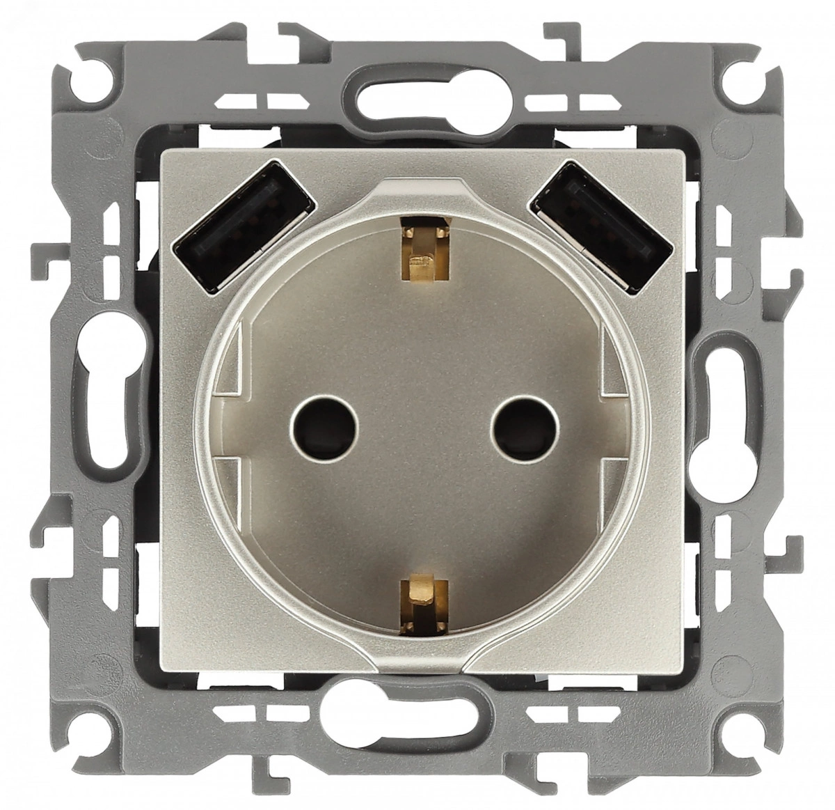 Розетка с заземлением с USB со шторками серии Эра 12 скрытой установки механизм цвет шампань 12-4109-04. Номинальные характеристики 16А 250В/3А-5В . Сделана из поликарбоната. Монтаж в подрозетник производится и на лапки, и на винты. Рамки приобретаются отдельно.