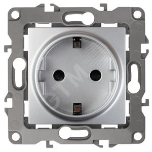 Розетка 2P+E Schuko, 16A-250В, б.л., Эра12, алюминий, 12-2001-03