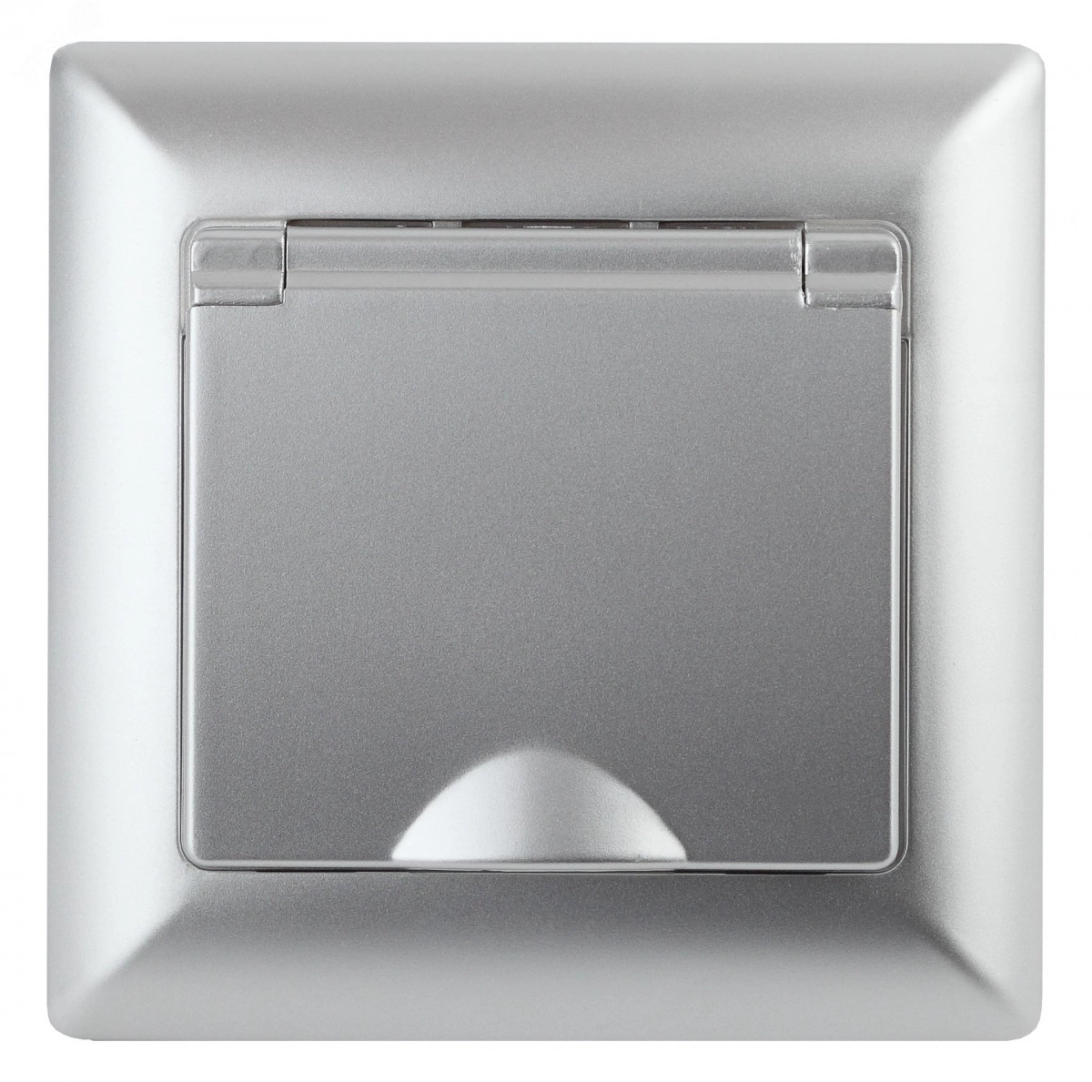 Розетка 2P+E Schuko с крышкой, 16А-250В, СУ, Solo, алюминий, 4-203-03