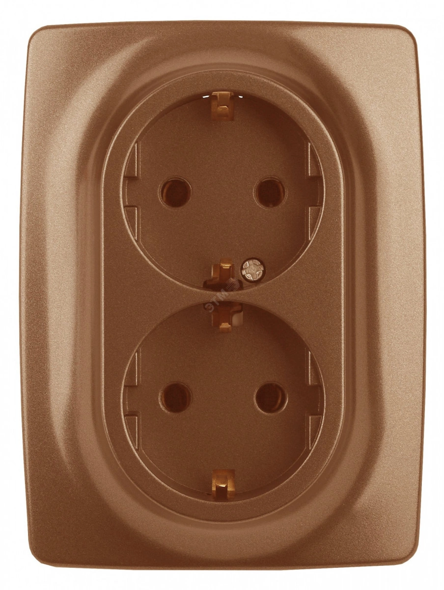 Полное описание: Розетка 2X2P+E Schuko, 16A-250В, Эра12, медь, 12-2106-14