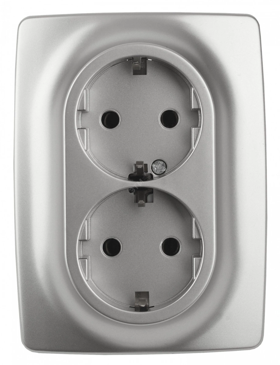 Розетка двойная с заземлением со шторками серии Эра 12 скрытой установки цвет алюминий 12-2108-03. Номинальные хар-ки 16А 250В . Сделана из поликарбоната, оснащена автоматическими клеммами для быстрой и надёжной фиксации жил кабеля в механизме. Парные клеммы обеспечивают соединение шлейфом. Монтаж в подрозетник производится и на лапки, и на винты. Рамки приобретаются отдельно. Рамки Эра 12: 1 пост 12-5001-хх, 2 поста 12-5002-хх, 3 поста 12-5003-хх, 4 поста 12-5004-хх, 5 постов 12-5005-хх. Рамки Эра 12 Сатин: 1 пост 12-5101-хх, 2 поста 12-5102-хх, 3 поста 12-5103-хх, 4 поста 12-5104-хх, 5 постов - 12-5105-хх (хх - код цвета: 01-белый, 02-слоновая кость, 03-алюминий, 04-шампань, 05-антрацит, 06-чёрный, 07-ольха(белёный дуб-сатин), 08-вишня, 09-дуб, 10-венге, 11-сосна, 21-жёлтый, 22-оранжевый, 23-красный, 24-охра, 25-бордо, 26-лайм, 27-зелёный, 28-голубой, 29-синий).