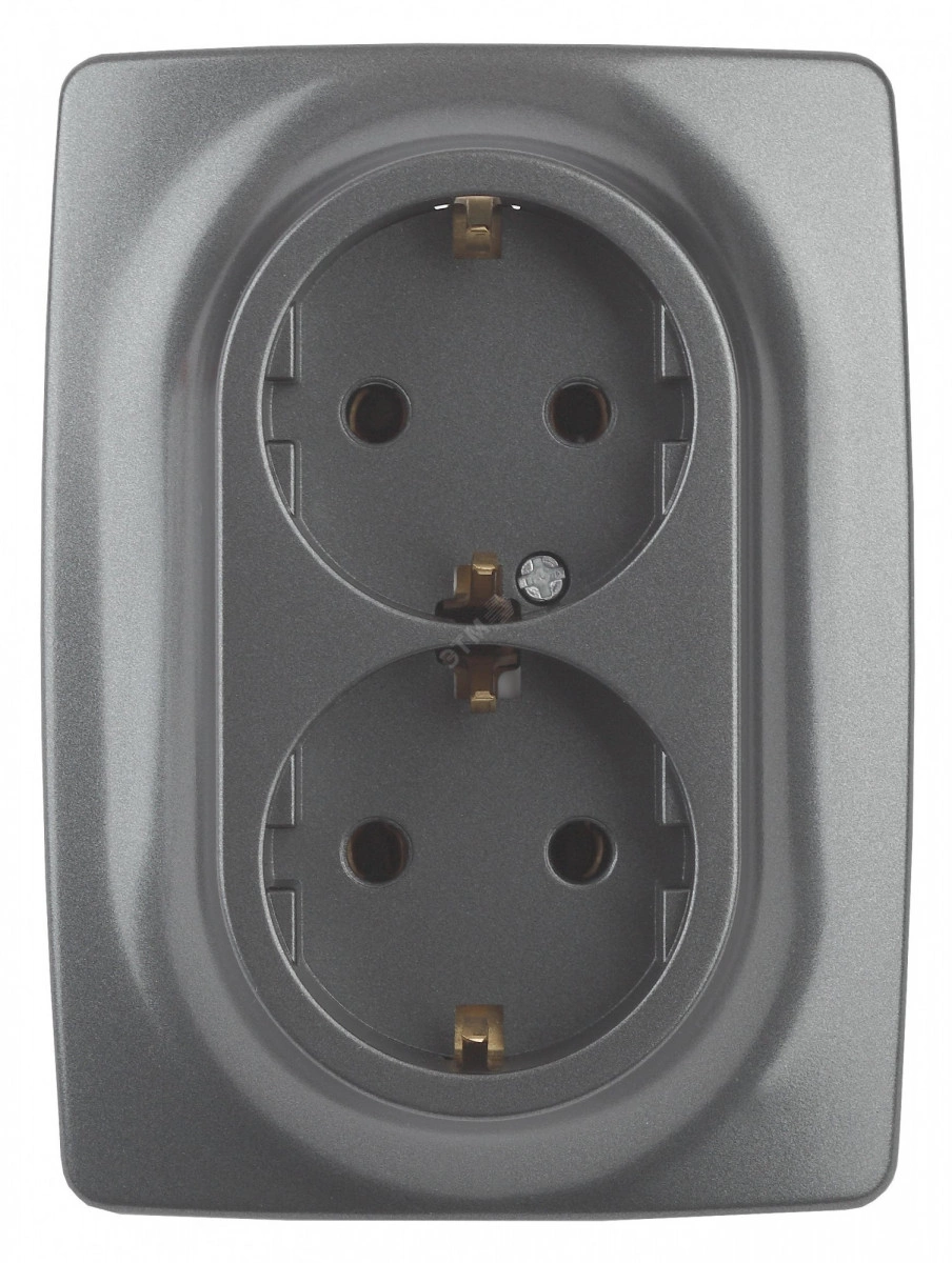 Розетка 2X2P+E Schuko со шторками , 16A-250В, Эра12, графит, 12-2108-12