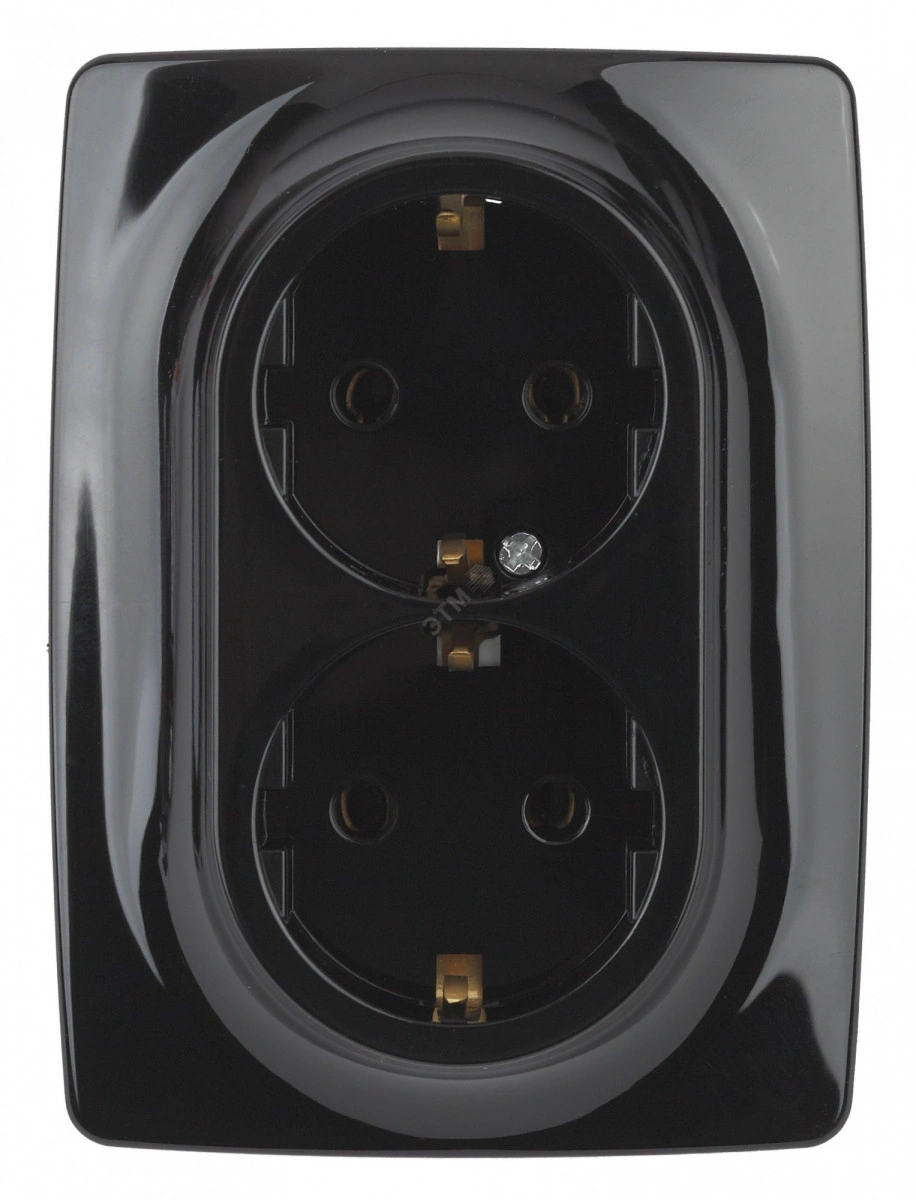 Розетка двойная с заземлением со шторками серии Эра 12 скрытой установки цвет чёрный 12-2108-06. Номинальные хар-ки 16А 250В . Сделана из поликарбоната, оснащена автоматическими клеммами для быстрой и надёжной фиксации жил кабеля в механизме. Парные клеммы обеспечивают соединение шлейфом. Монтаж в подрозетник производится и на лапки, и на винты. Рамки приобретаются отдельно.
