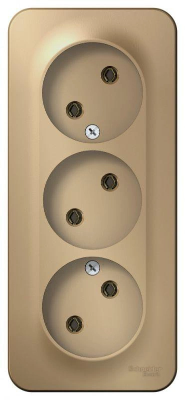 Розетка Schneider Electric BLANCA (титан, открытой установки) трехместная, без шторок и заземления, с изолирующей пластиной предназначена для сетей до 250В, на ток до 16А. Трехместная розетка позволяет подключить три устройства в одном месте. Она изготовлена из ABS-пластика, проста в установке и удобна в применении.