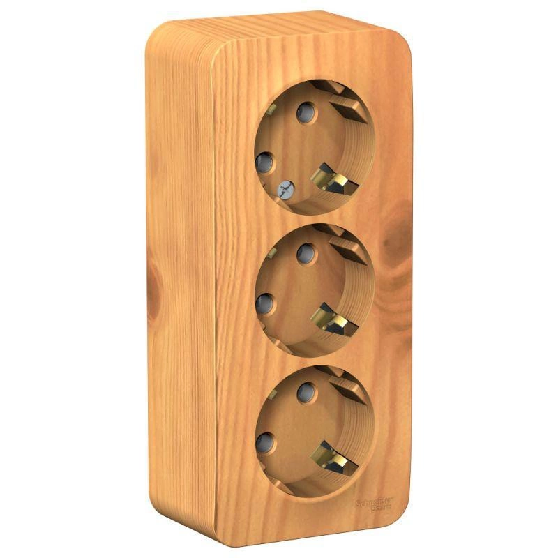 Розетка Schneider Electric BLANCA (ясень, открытой установки) трехместная, без шторок, с заземлением и изолирующей пластиной предназначена для сетей до 250В, на ток до 16А. Трехместная розетка позволяет подключить три устройства в одном месте. Заземление обеспечивает безопасность при косвенном прикосновении. Изделия цвета Ясень обладают уникальным рисунком, напоминающим древесный сруб. Она изготовлена из ABS-пластика, проста в установке и удобна в применении.