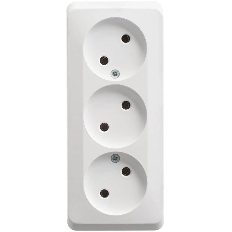 Розетка Schneider Electric ЭТЮД (белый, открытой установки) трёхместная, без шторок и заземления предназначена для применения в сетях до 250В, на ток до 16А. Трёхместная розетка позволяет подключить три устройства в одном месте. Она проста в установке и удобна в применении. Сделано в России.