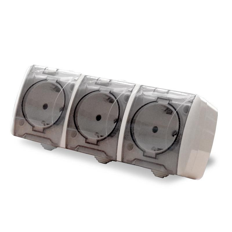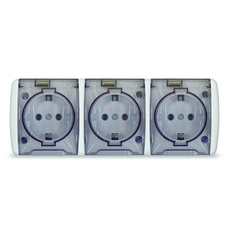 Розетка 3-м ОП Клио 16А IP54 с заземл. с прозр. крышкой бел. Universal К2235