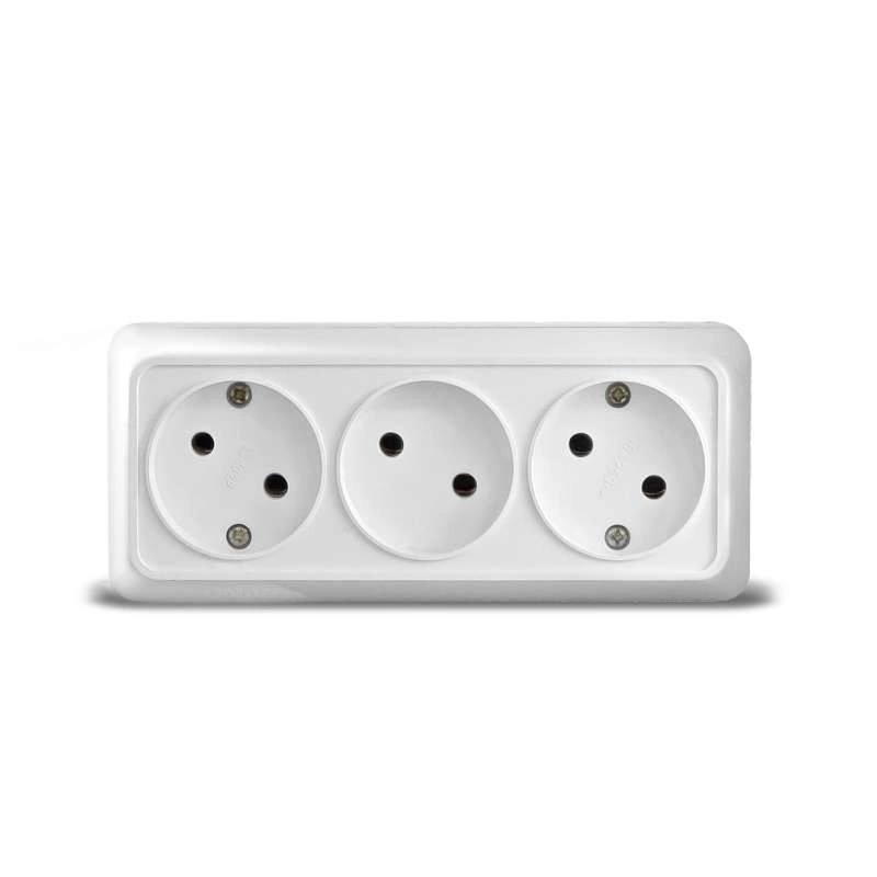 Розетка 3-м ОП Олимп без заземл. бел. UNIVersal 1160 представлена потребителю в серии "Олимп".