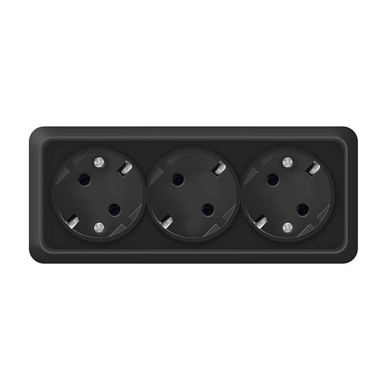 Розетка 3-м ОП Олимп 16А IP20 с заземл. черн. Universal 2218