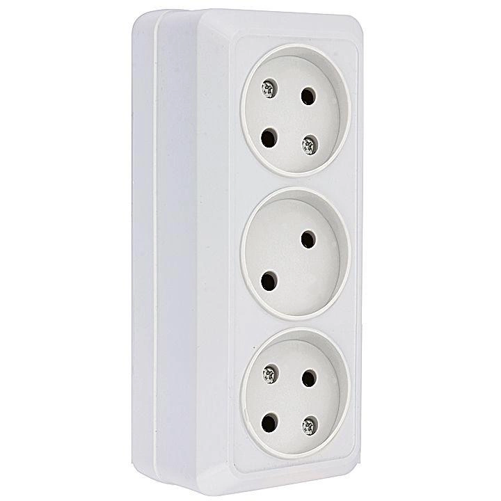 Полное описание: Розетка 3-м ОП Рим 10А IP20 без заземл. бел. EKF ENR10-202-10