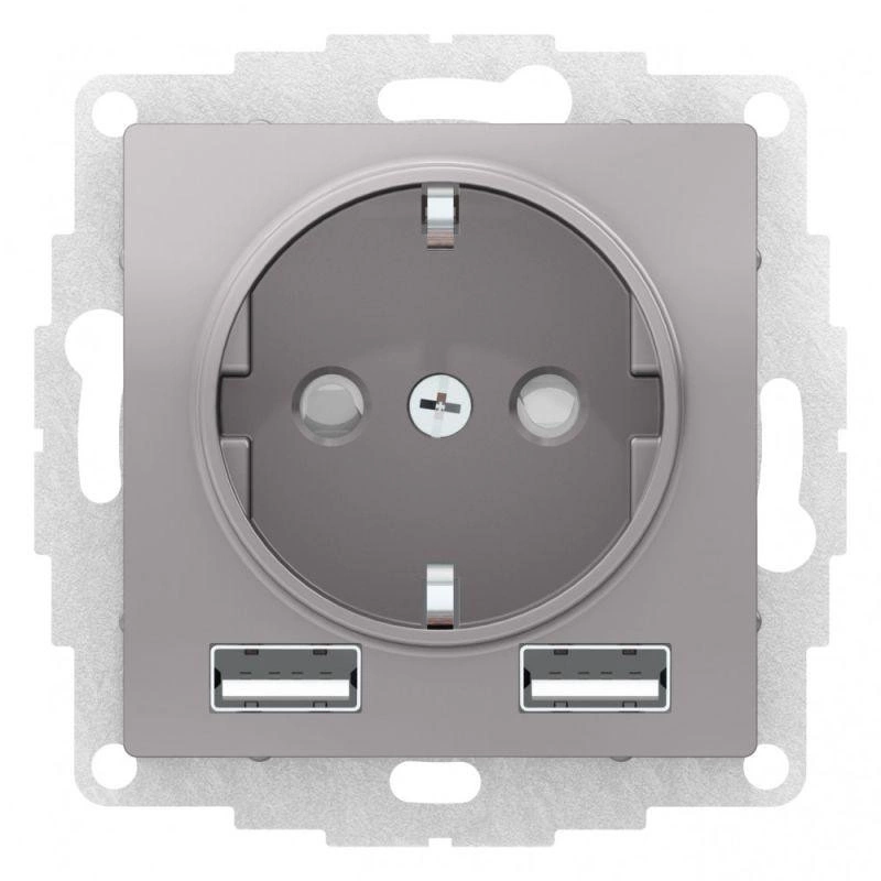 Полное описание: Розетка 3-м СП AtlasDesign 16А IP20 с 2-мя заряд. устройствами USB тип A+A 5В/2.4А 2х5В/1.2А механизм алюм. SchE ATN000330