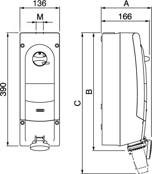 Розетка 3P+E 32А с АВДТ IP44 400В с механической блокировкой