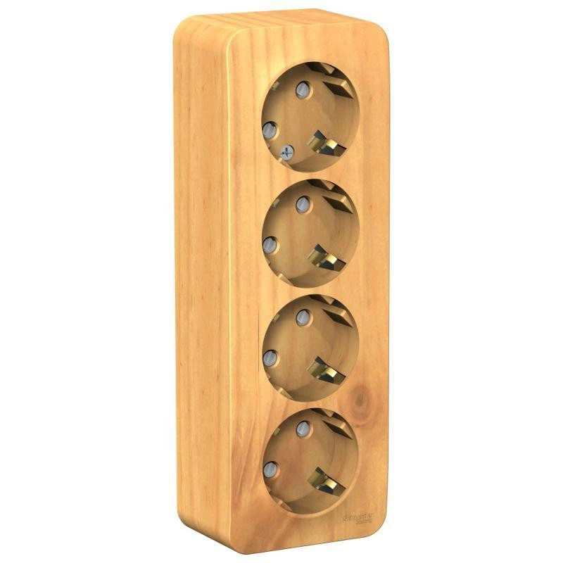Розетка Schneider Electric BLANCA (ясень, открытой установки) четырехместная, с заземлением, шторками и изолирующей пластиной предназначена для сетей до 250В, на ток до 16А. Четырехместная розетка позволяет подключить четыре устройства в одном месте. Шторки и заземление обеспечивают дополнительную безопасность при косвенном прикосновении. Изделия цвета Ясень обладают уникальным рисунком, напоминающим древесный сруб.