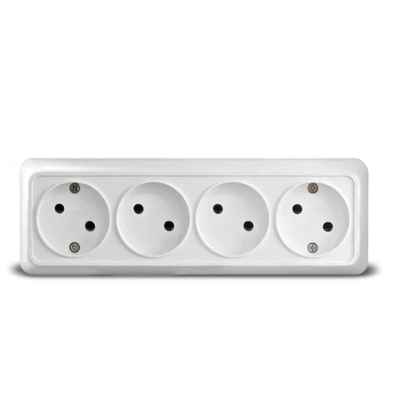 Розетка 4-м ОП Олимп без заземл. бел. UNIVersal 1162 представлена потребителю в серии "Олимп".