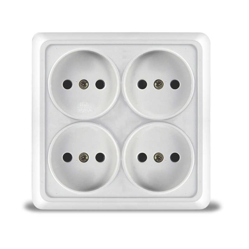 Розетка 4-м ОП Олимп без заземл. квадрат бел. UNIVersal 1164 представлена потребителю в серии "Олимп".