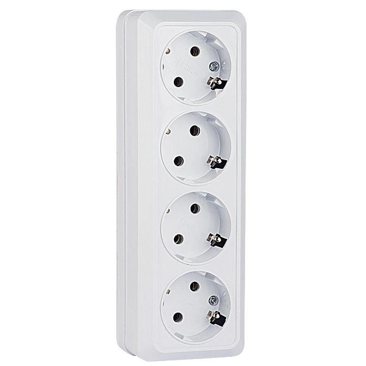 Розетка 4-м ОП Рим 16А IP20 с заземл. бел. EKF ENR16-328-10