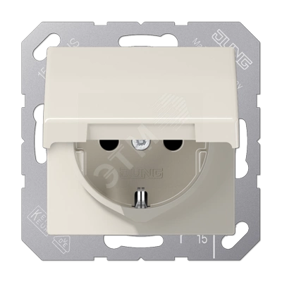 Розетка AS500 с заземлением без шторок с крышкой слоновая кость 16A