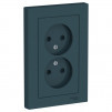 Розетка двойная Systeme Electric (ранее Schneider Electric) серии AtlasDesign (в сборе, цвет изумруд) без заземления со шторками подходит для сетей 250 В, на ток 16 А. Лицевые детали из качественного ABS-пластика, устойчивого к царапинам и УФ-излучению. Двойная розетка позволяет подключить два устройства в одном месте. Изделие поставляется в комплекте с рамкой того же цвета. Усиленные прямые монтажные лапки для лучшей фиксации механизма в монтажной коробке.