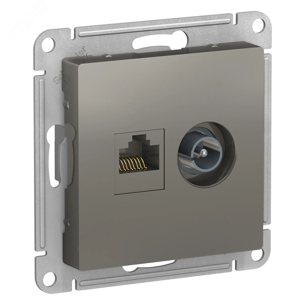 Механизм Schneider Electric AtlasDesign (цвет сталь) двойной розетки разъёмами RJ45 категория 5е и TV предназначен для удобного и быстрого подключения вашего компьютера и телевизора к соответствующим сетям. Лицевые детали из качественного ABS-пластика, устойчивого к царапинам и УФ-излучению. Усиленные прямые монтажные лапки для лучшей фиксации механизма в монтажной коробке.