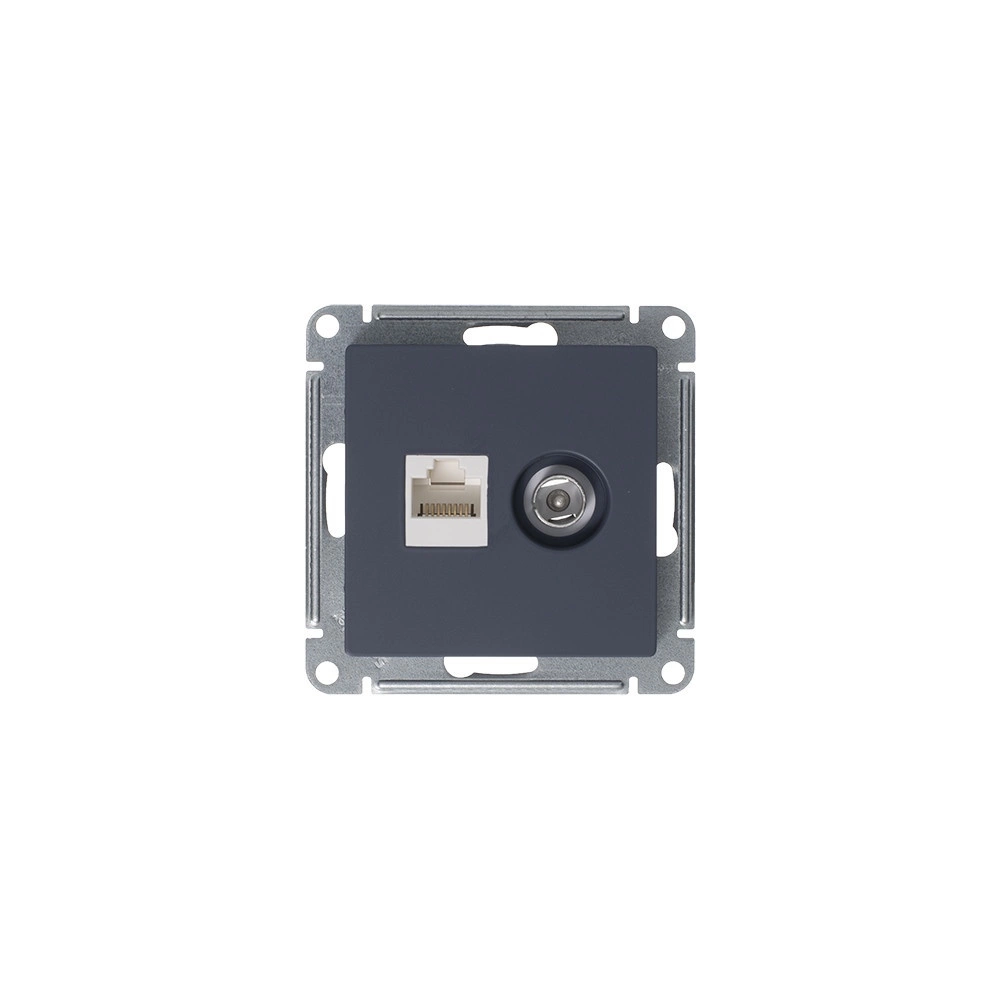 Механизм Schneider Electric AtlasDesign (цвет грифель) двойной розетки разъёмами RJ45 категория 5е и TV предназначен для удобного и быстрого подключения вашего компьютера и телевизора к соответствующим сетям. Лицевые детали из качественного ABS-пластика, устойчивого к царапинам и УФ-излучению. Усиленные прямые монтажные лапки для лучшей фиксации механизма в монтажной коробке.