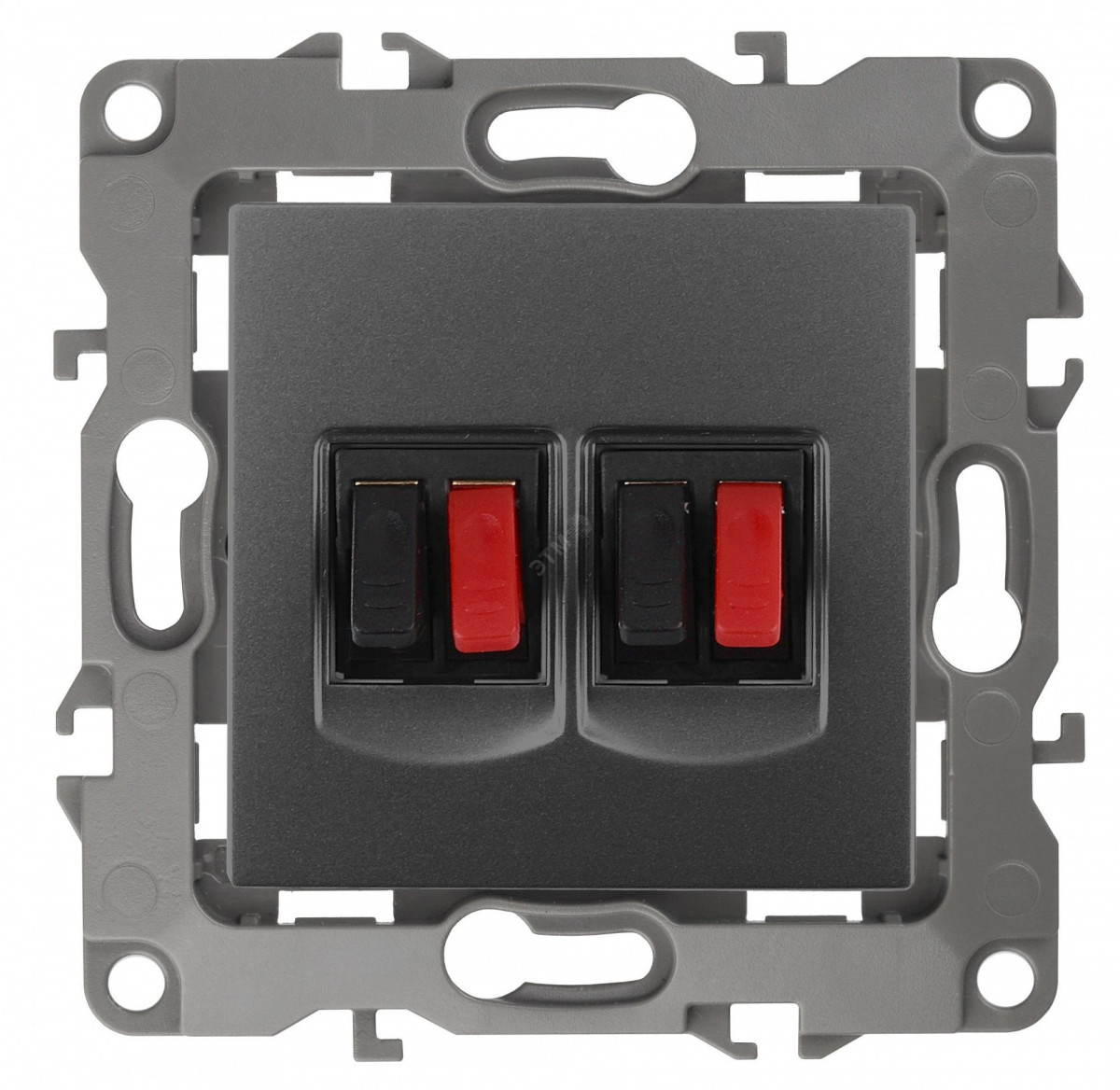Розетка двойная аудио стерео серии Эра 12 скрытой установки механизм цвет графит 12-3112-12. Сделана из поликарбоната. Монтаж в подрозетник производится и на лапки, и на винты. Рамки приобретаются отдельно. Рамки Эра 12: 1 пост 12-5001-хх, 2 поста 12-5002-хх, 3 поста 12-5003-хх, 4 поста 12-5004-хх, 5 постов 12-5005-хх. Рамки Эра 12 Сатин: 1 пост 12-5101-хх, 2 поста 12-5102-хх, 3 поста 12-5103-хх, 4 поста 12-5104-хх, 5 постов - 12-5105-хх (хх - код цвета: 01-белый, 02-слоновая кость, 03-алюминий, 04-шампань, 05-антрацит, 06-чёрный, 07-ольха(белёный дуб-сатин), 08-вишня, 09-дуб, 10-венге, 11-сосна, 21-жёлтый, 22-оранжевый, 23-красный, 24-охра, 25-бордо, 26-лайм, 27-зелёный, 28-голубой, 29-синий).