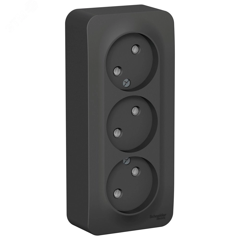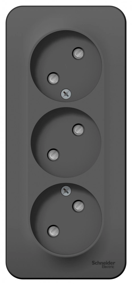 Розетка Systeme Electric (ранее Schneider Electric) BLANCA (антрацит, открытой установки) трехместная, без заземления, со шторками и изолирующей пластиной предназначена для сетей до 250В, на ток до 16А. Трехместная розетка позволяет подключить три устройства в одном месте. Шторки обеспечат дополнительную безопасность в помещении, где находятся дети.