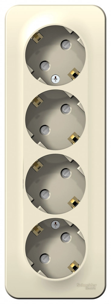Розетка Schneider Electric BLANCA (молочный, открытой установки) четырехместная, с заземлением, шторками и изолирующей пластиной предназначена для сетей до 250В, на ток до 16А. Четырехместная розетка позволяет подключить четыре устройства в одном месте. Шторки и заземление обеспечивают дополнительную безопасность при косвенном прикосновении.