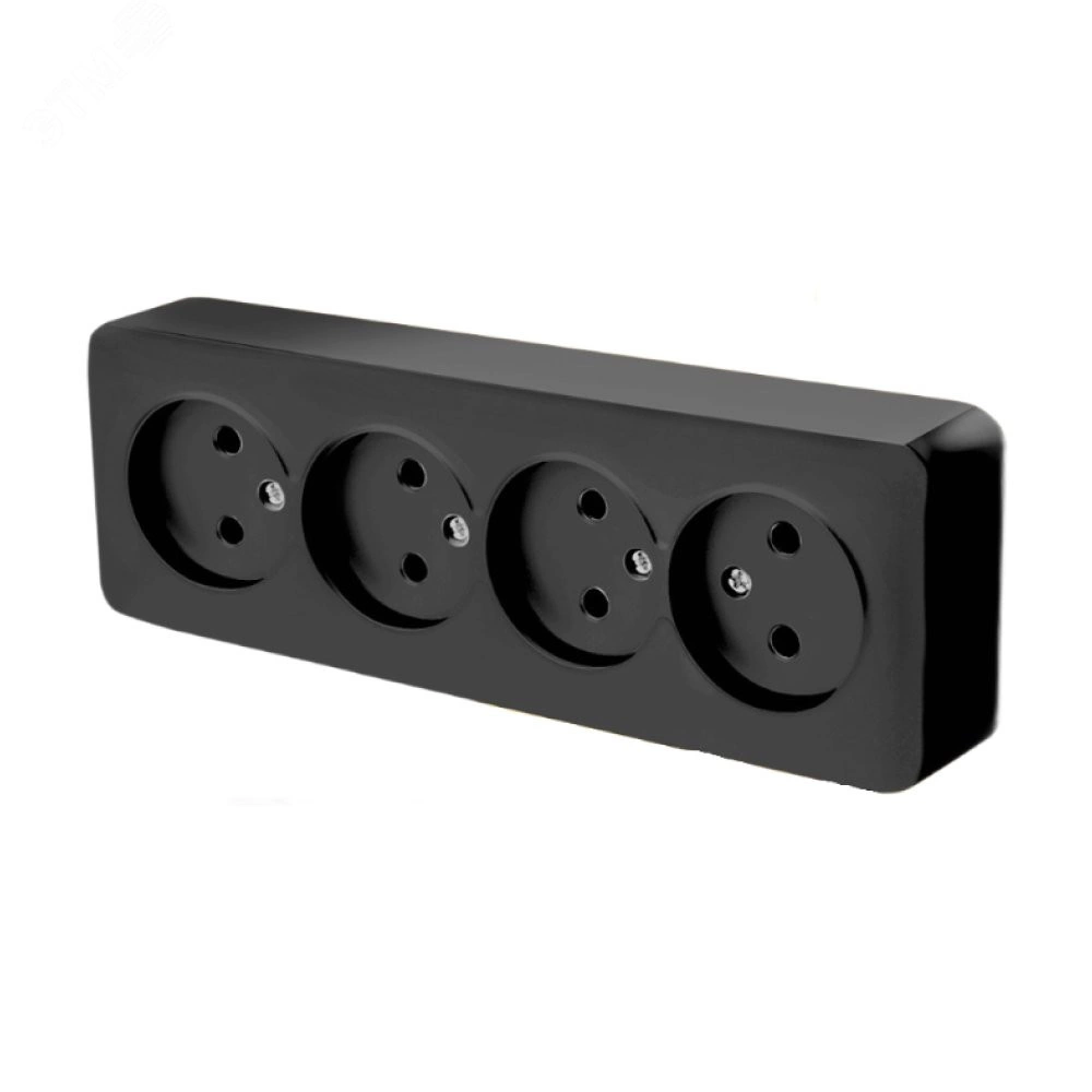 Розетка четырехместная б/з 250В 10А серия София черный STEKKER