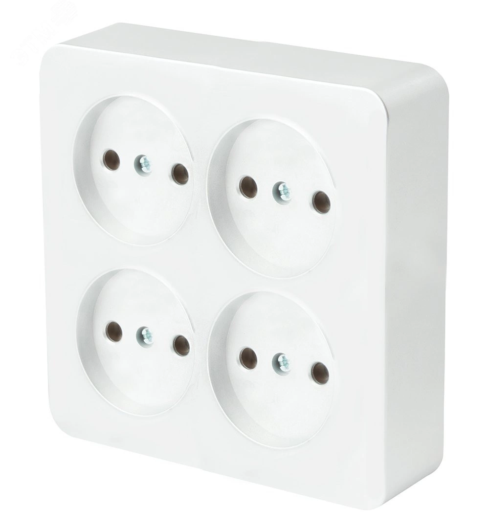 Розетка четырехместная квадратная б/з 250В 10А серия София белый STEKKER