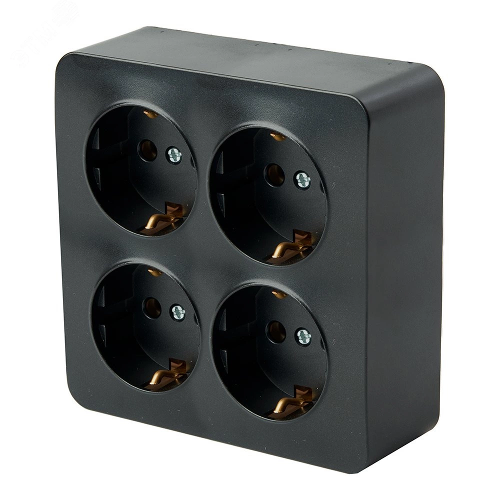Розетка четырехместная квадратная с/з 250В 10А серия София черный матовый STEKKER