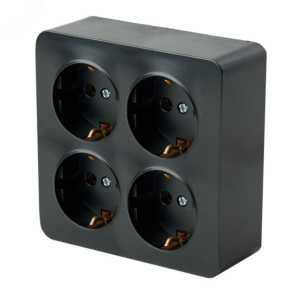 Розетка четырехместная квадратная с/з 250В 10А серия София черный STEKKER