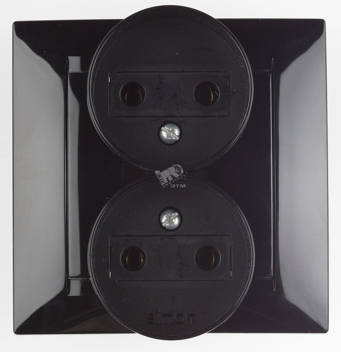 Розетка двойная 2Р, 16А, 250В, винтовой зажим, черный глянец