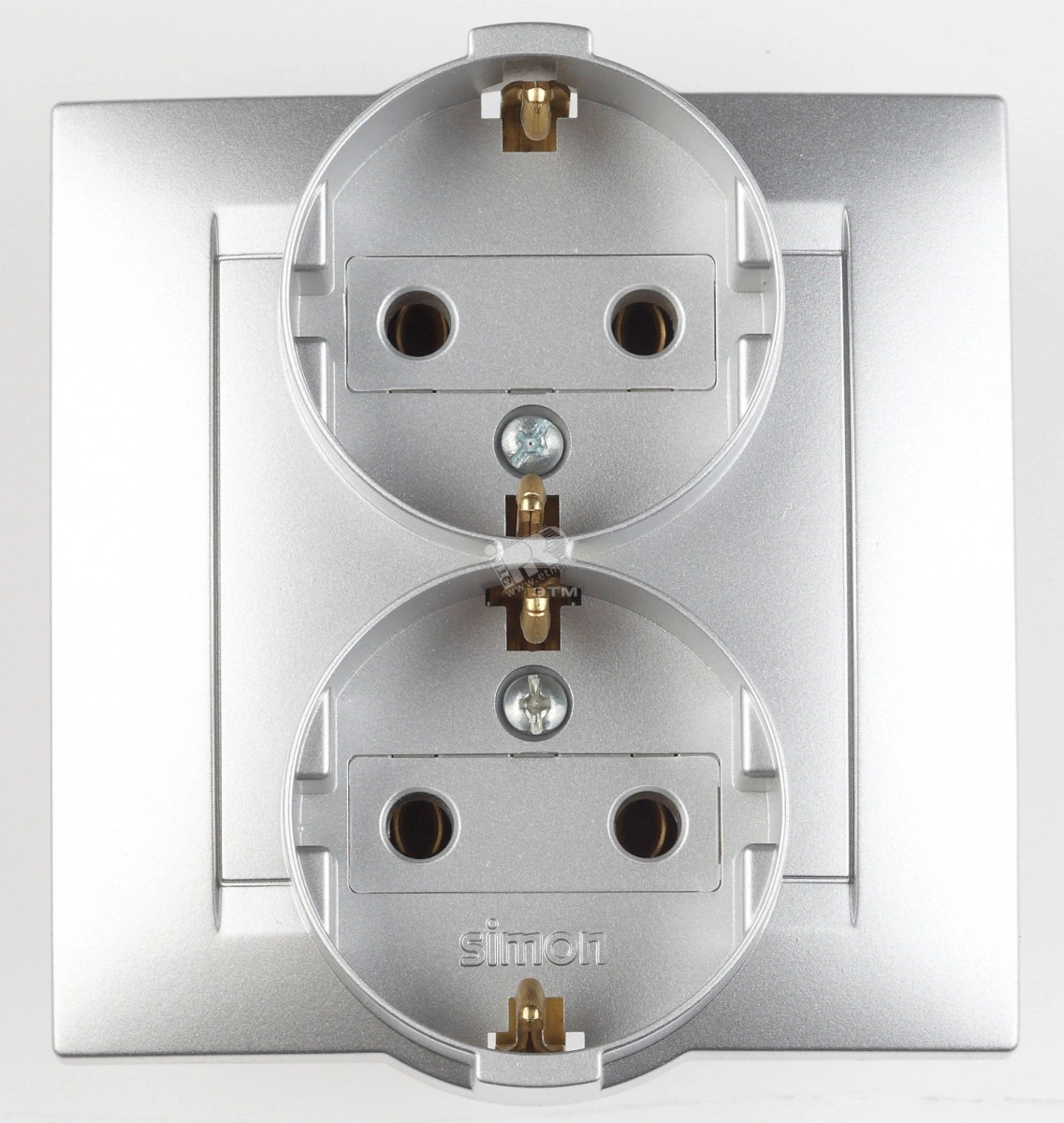 Розетка двойная 2Р+Е Schuko, 16А, 250В, винтовой зажим, алюминий