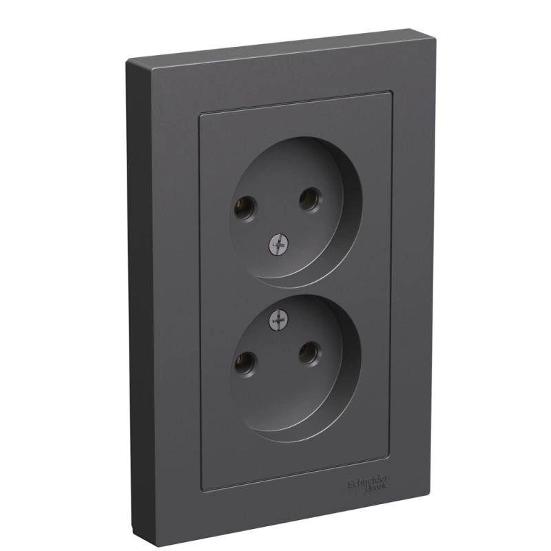 Полное описание: Розетка двойная AtlasDesign без заземл.16А в сборе базальт SE ATN001420