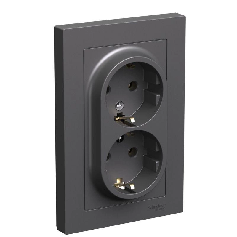 Полное описание: Розетка двойная AtlasDesign с заземл. 16А в сборе базальт SE ATN001424