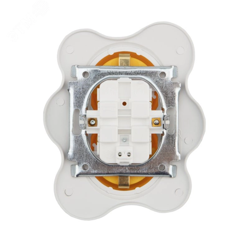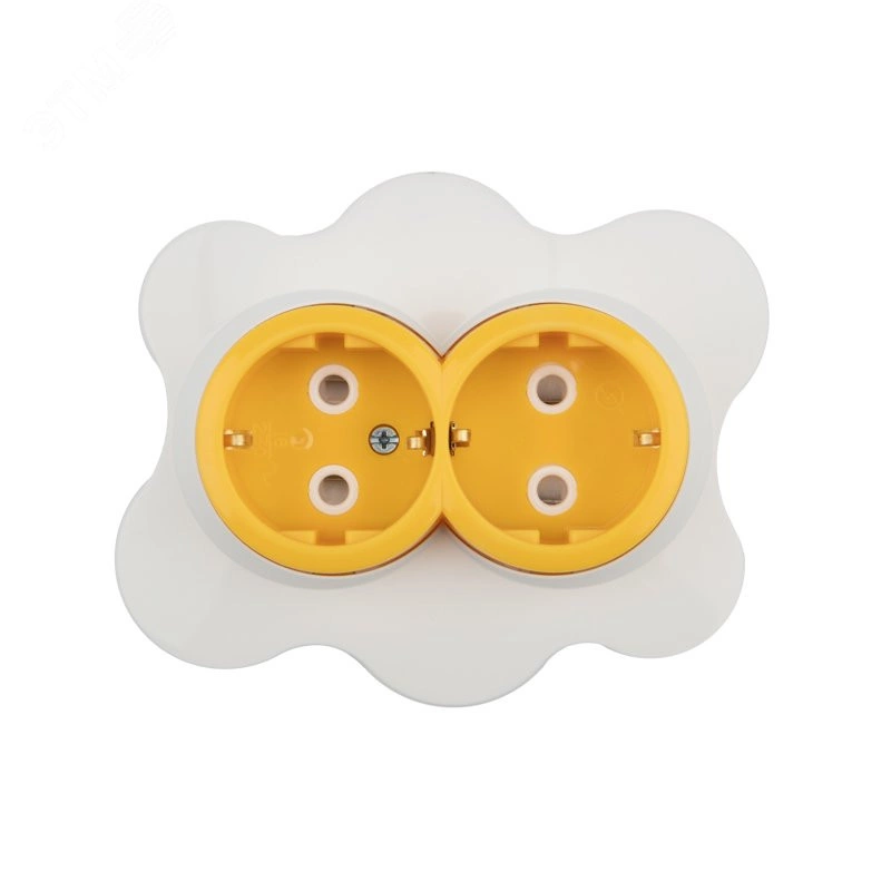 Розетка двойная KRANZ HAPPY Яичница скрытой установки, заземл и шторками, желтая/белая