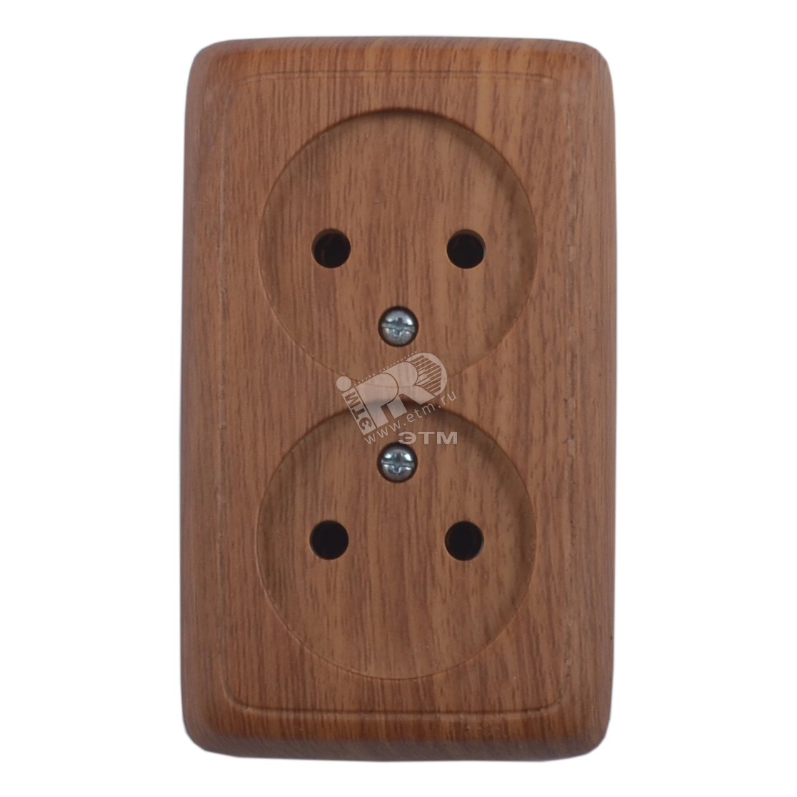 Розетка двойная наружная с изоляционной пластиной дуб